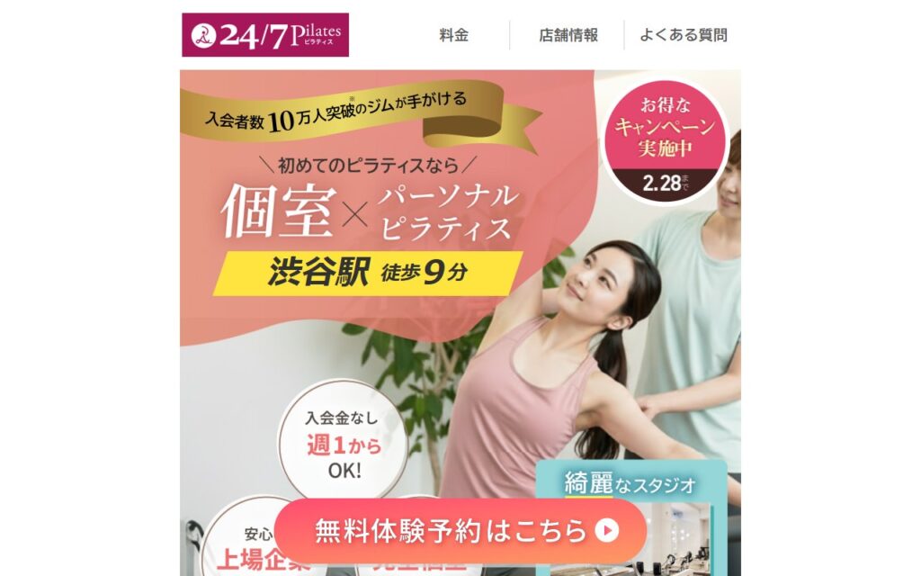 24/7ピラティス 渋谷店|料金・特徴・口コミまとめ